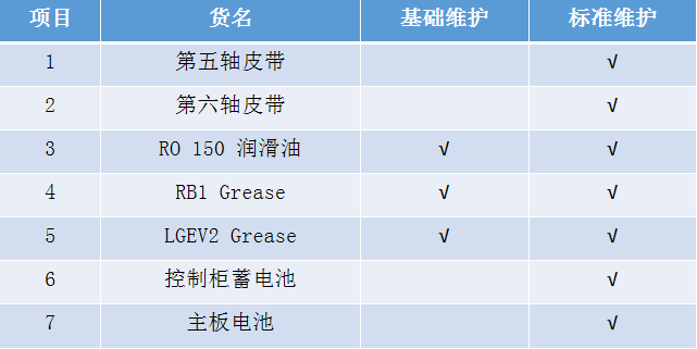 保養(yǎng)材料明細(xì)(以庫卡機(jī)器人為例)